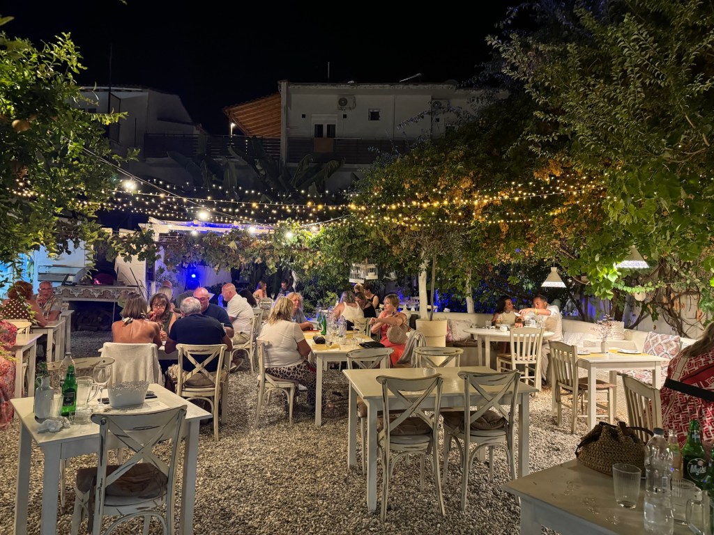 For dinner go to a really fun lively restaurant with a DJ and small dance floor. I meet 5 other solo women from the UK and enjoy hearing their stories. I meet them via a post on Facebook, like a Meetup. Most of them have been here 10+ times so I get a lot of helpful info about Skiathos. They love this island.