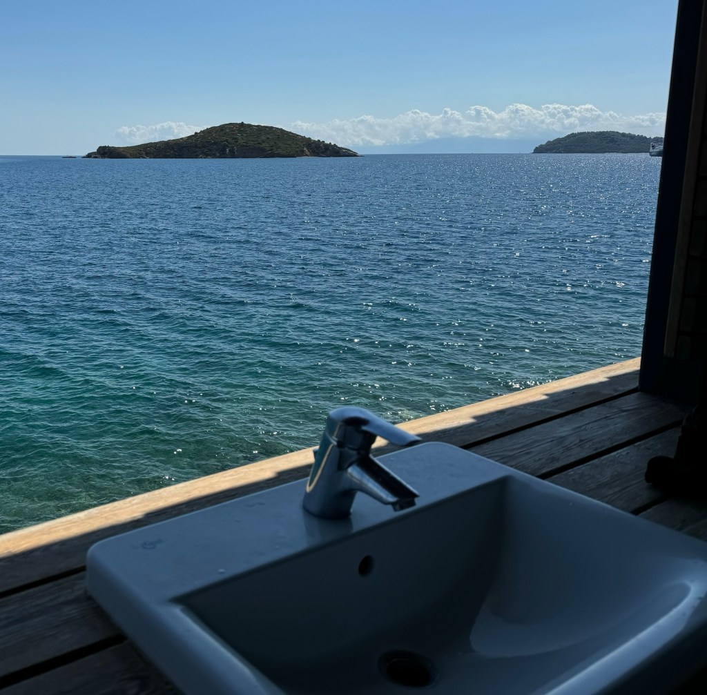 The cafe is beautiful, overlooking the town and water. But the best thing about the Bourtzi cafe is their bathroom.