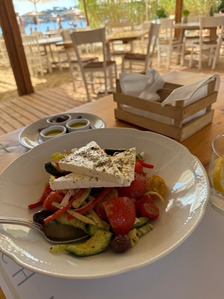 The taverna is perfect and, shocking, I get a Greek salad. I could have 100 of these and not tire of them.