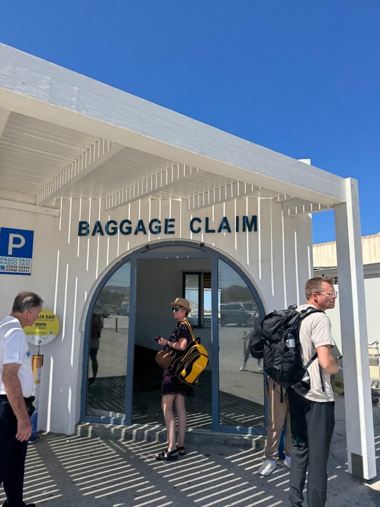 No computerized baggage claim here! Here in Naxos there is a small doorway to a small room where people fight to get into, find their bag, then push their way out. As with many things in Greece it is organized chaos. Even though I’ve done carryon from US, I have to check my bag for this prop plane. So I wait…