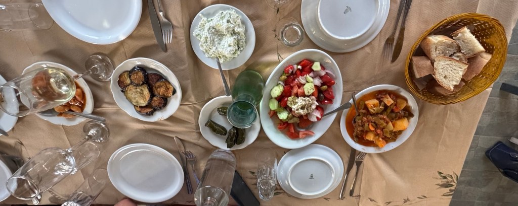 The evening ends with Anna and her brother leading the group in Greek dancing, then plate breaking then line dancing. Everyone is laughing and happy. It’s a beautiful experience.