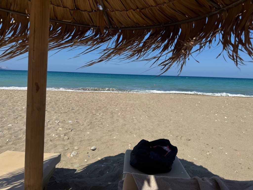 I arrive at Agios Georgia beach bar, completely off the travel grid yet every table is taken. Fuck. The staff shared that it is Sunday and the last day before school starts. But it is so funky and authentic I find a place to lay down for lunch. Yes, lay down with a small table for food.