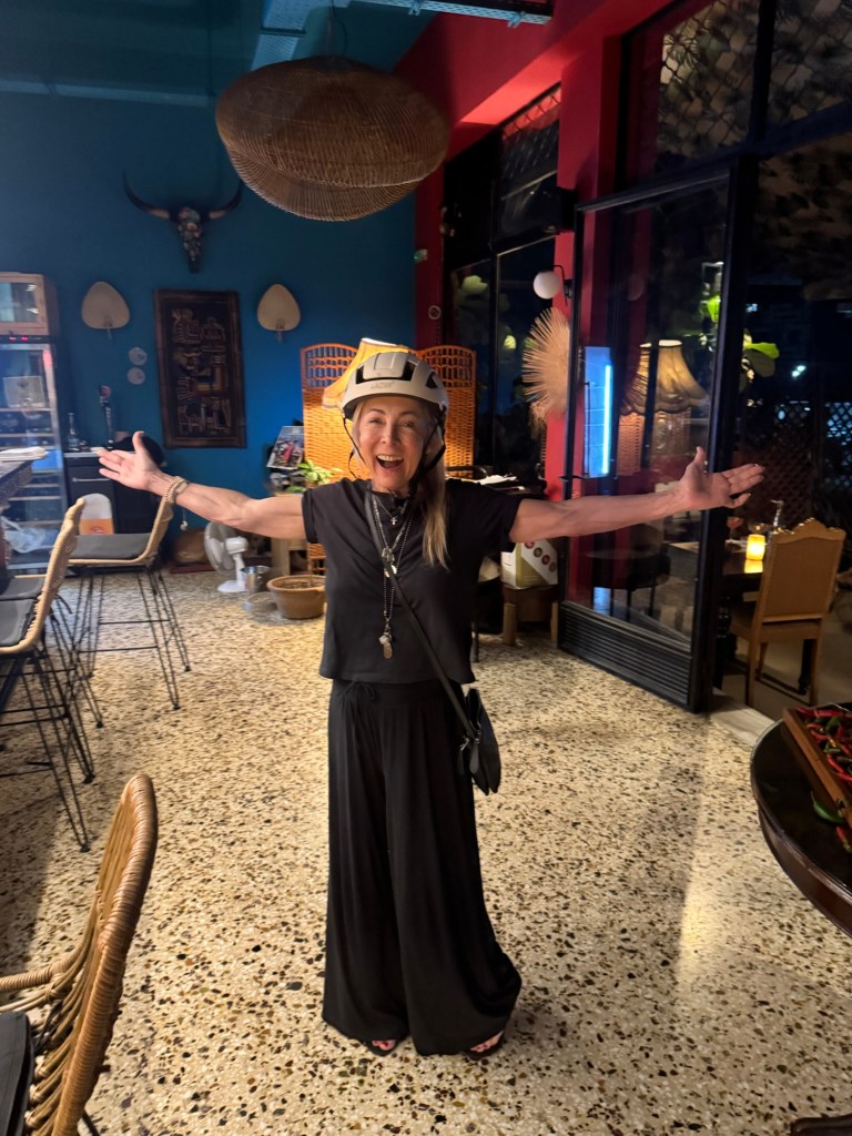 A sweet young man from the kitchen offers to take me on his motorcycle. They all work to find a helmet and we are off.