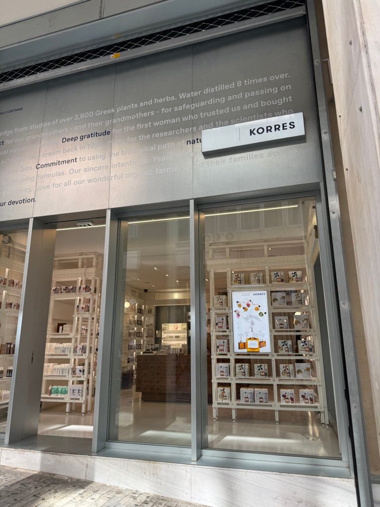 My day in Athens is spent walking and shopping. I have a few favorite shops here – not designer clothes or bags but olive oil, honey and Greek body products.